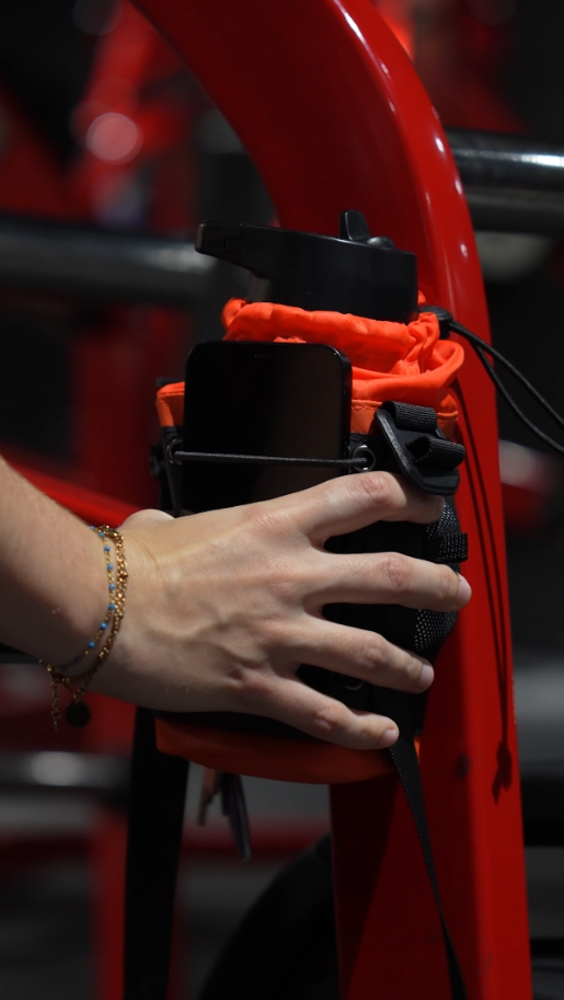 Oui ! Le panneau avant dispose d’une zone dédiée pour fixer votre téléphone, afin de filmer vos séances en mains libres — à la salle ou en extérieur.